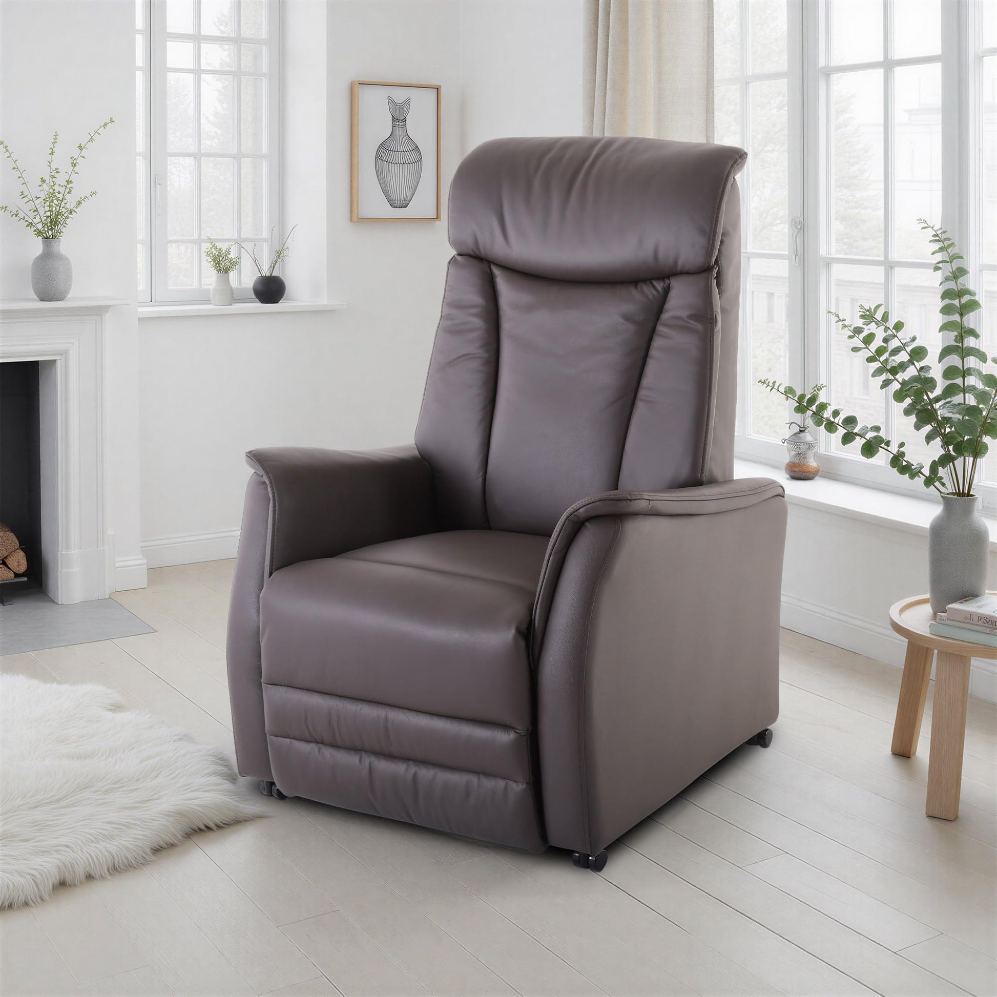 **Raburg EOS 2 Fernsehsessel mit Aufstehhilfe | 2 Motoren, Liegefunktion, Sitzheizung, Taschenfederkern, Leder/Kunstleder, Dunkelbraun**