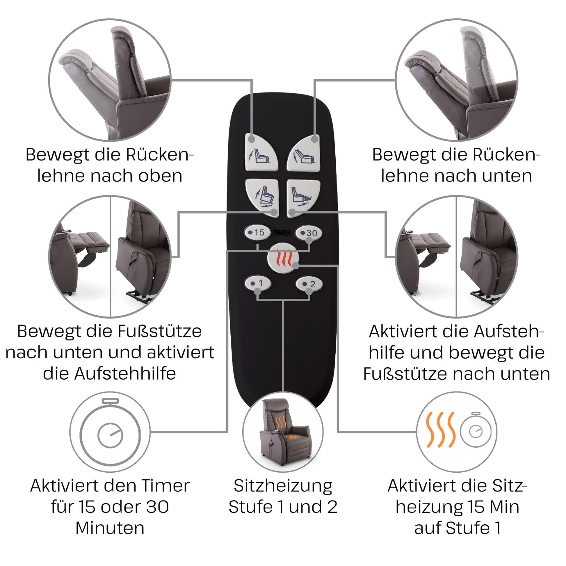 - ✅ Elektrische Aufstehhilfe: Sicheres & müheloses Aufstehen durch leises Heben des Sessels. Ideal für Senioren & Personen mit eingeschränkter Beweglichkeit.
