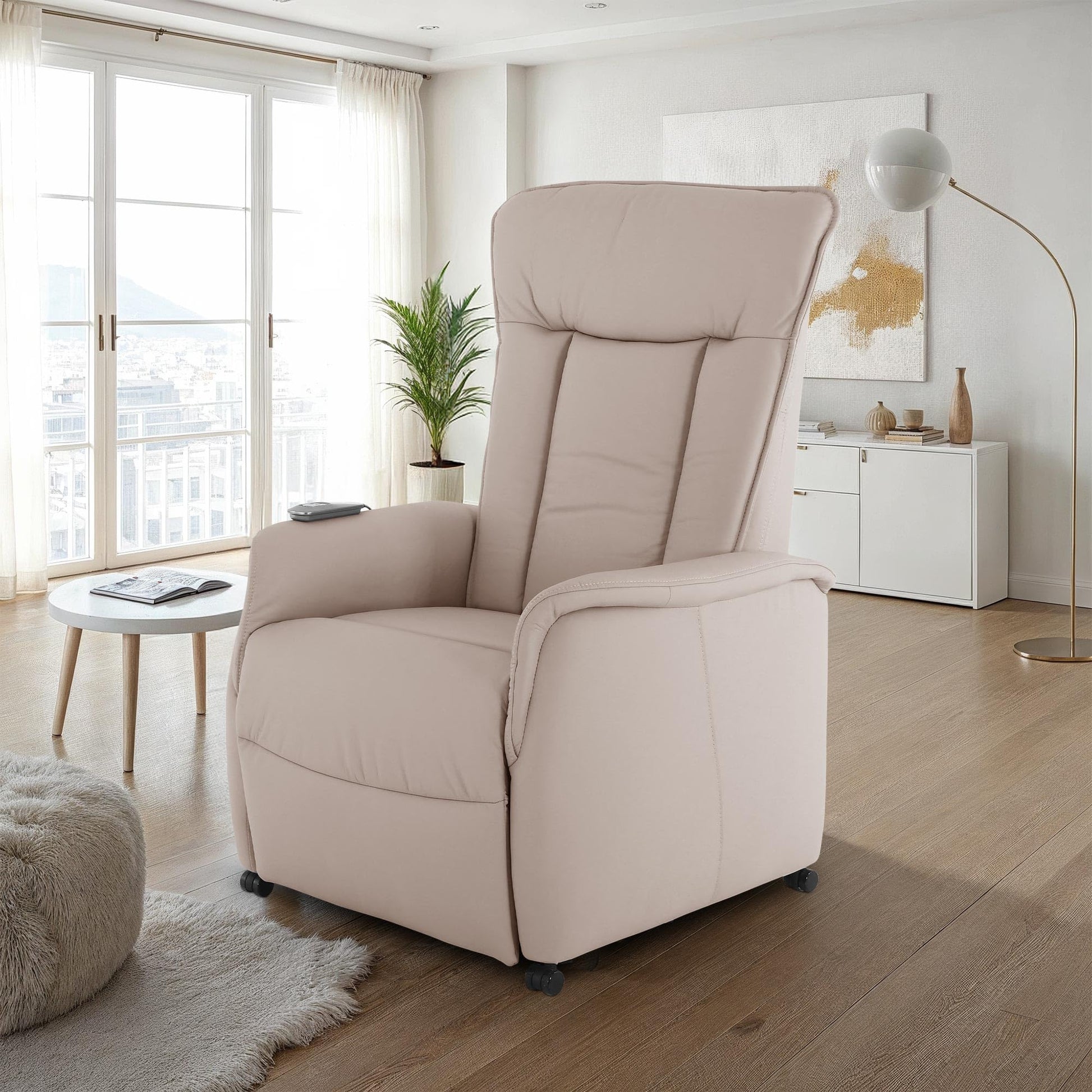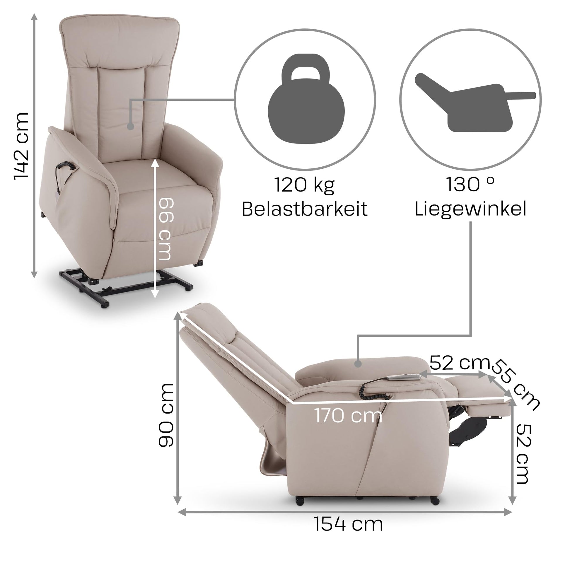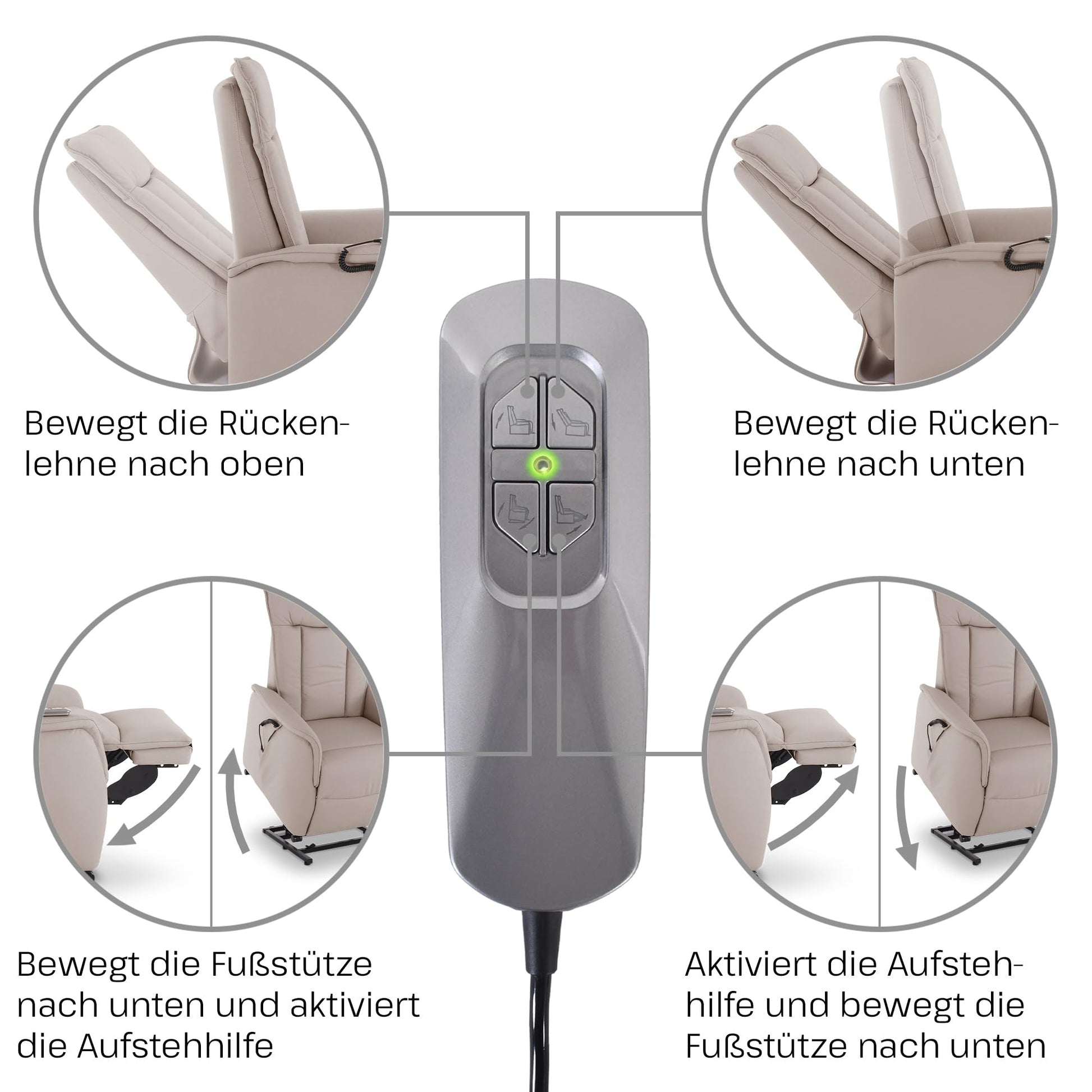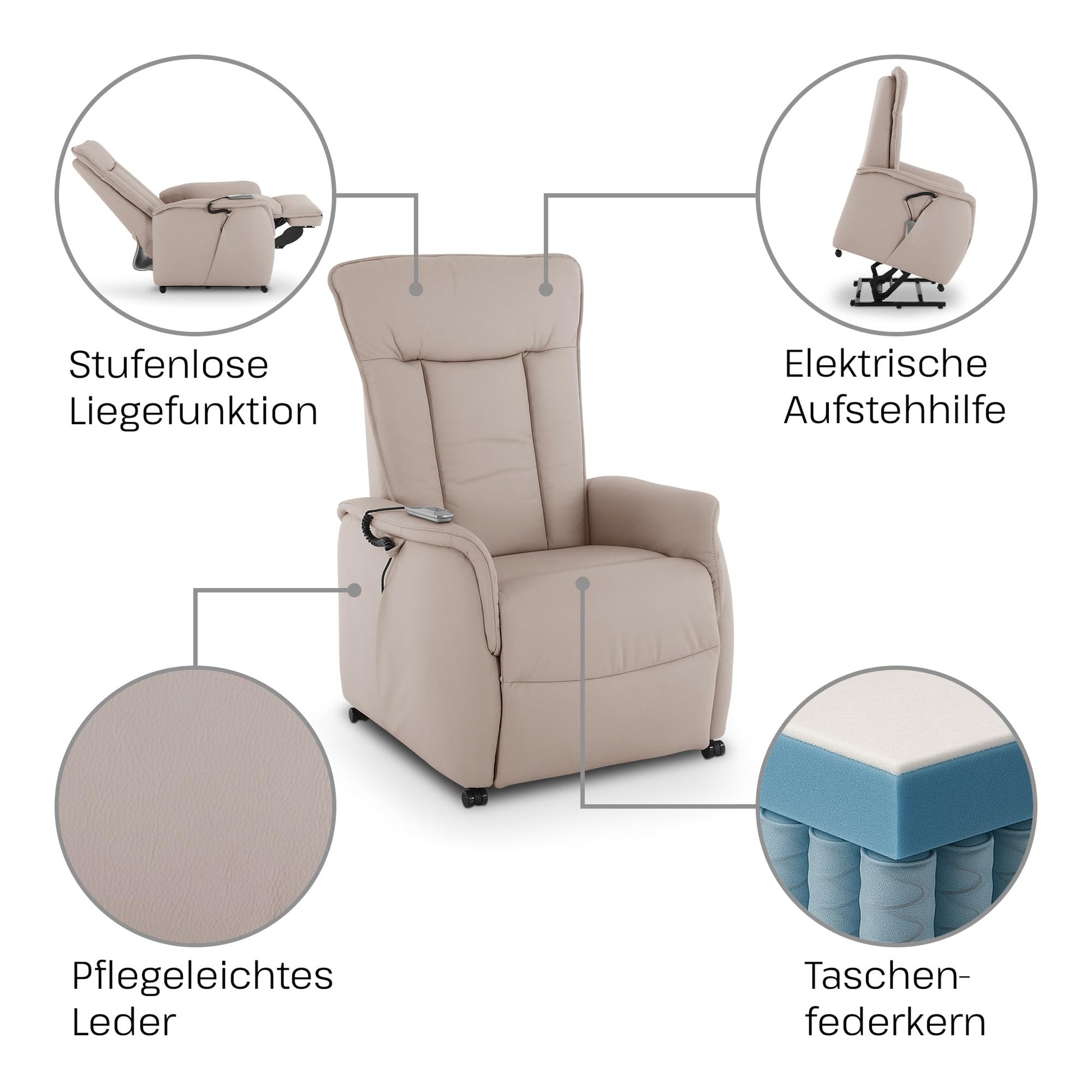 **Raburg Marie Fernsehsessel mit Aufstehhilfe | Elektrisch verstellbar, Liegefunktion, Komfortschaum, Leder/Kunstleder, Naturgrau**