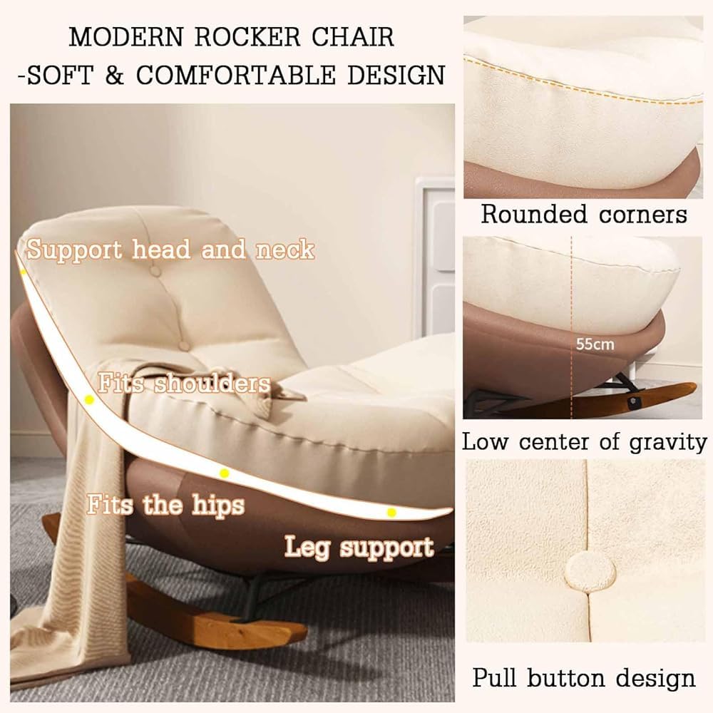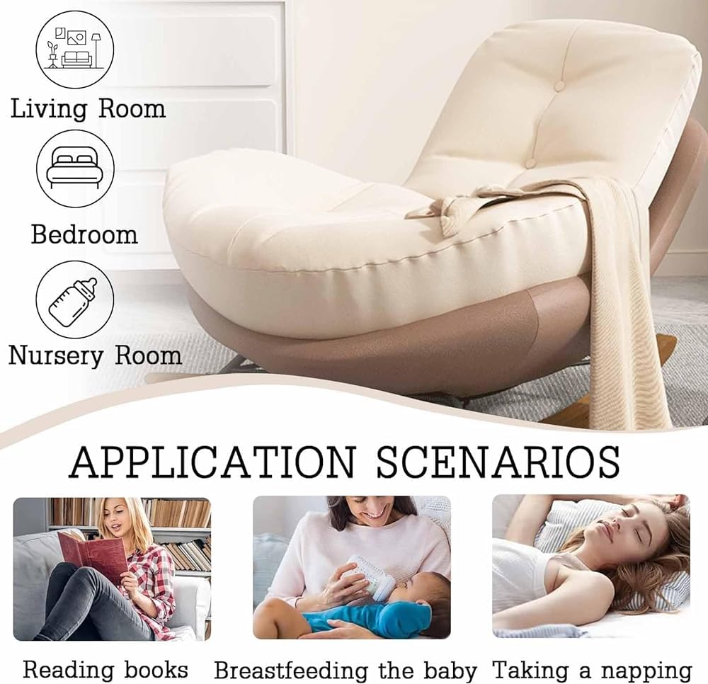 - *VIELSEITIGE ANWENDUNG - Sanftes Schaukeln: Die Schaukelfunktion dieses gepolsterten Schaukelstuhls wirkt beruhigend. Es ist nicht nur für Erwachsene zum Sitzen und Lesen oder Fernsehen geeignet, sondern auch ideal für Mütter, um ihre Kinder in den Schlaf zu schaukeln. Es eignet sich perfekt für verschiedene Umgebungen, einschließlich Schlafzimmer, Wohnzimmer, Wartezimmer, Lobbys und Empfangsbereiche.